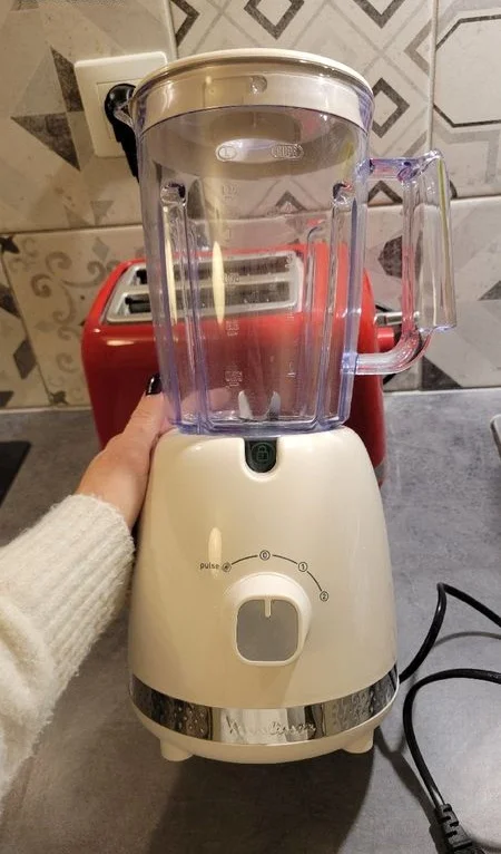 Un mélange parfait entre style rétro ivoire élégant et technologie hytec : le BLENDER MOULINEX SOLEIL LM355A10 – 500W de ses 6 lames en inox Tripl’Ax, qui offre un mixage fluide, puissant et parfaitement homogène sans grumeaux, même pour les smoothies bien chargés. Deux lames aspirent les ingrédients, deux les mixent au centre, et deux autres empêchent les morceaux de rester collés au fond. Son système Easy Lock offre bien une sécurité optimale : il ne démarre que si le bol est bien verrouillé. Facile à utiliser, en deux vitesses, une fonction Pulse et un bol de 1,75 L en plastique résistant, compatible avec lave-vaisselle rien a dire Un appareil complet, efficace, et pratique pour toute la famille.