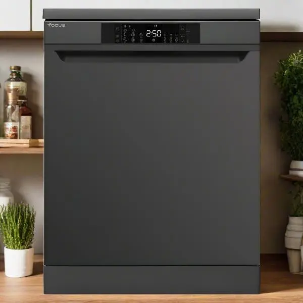 Lave Vaisselle FOCUS F.503G / Capacité : 13 Couverts / Classe énergétique : A++ / Pose Libre / Nombre de programmes : 8 programmes / Départ différé : 24h / 4 Températures / Afficheur LED / Niveau sonore : 47 dBA / Consommation d'eau : 9 Litres / Dimensions : 85 x 60 x 60cm / Couleur : Dark INOX / Garantie 1an.