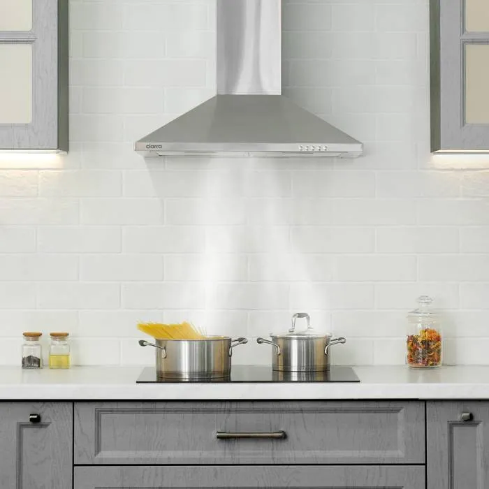 Mine de rien, un bon appareil peut faire toute la différence. L’éclairage LED intégré éclaire parfaitement votre plan de cuisson, tandis que son design inox gris apporte une touche d’élégance et de modernité à votre cuisine. Au passage, son installation murale facile vous fait gagner du temps et de l’énergie.