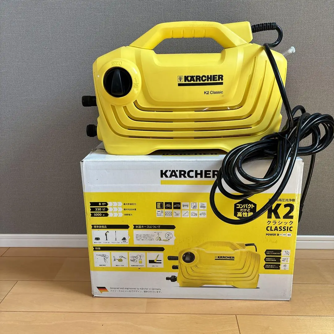 Nettoyeur Haute Pression käercher K2 CLASSIC CAR & Home / Puissance : 1400 Watts / Nettoyeur haute pression pour le nettoyage occasionnel et l'élimination des salissures légères / Rendement de surface : 20 m2-h / Pression : 110 bars / max. de 360 l-h / Câble d'alimentation : 5m / Flexible haute pression : 3m / Pistolet haute pression : G 120 Q / Filtre à eau intégré / Domains d'application : vélos - Outils et matériel de jardin -Mobilier de jardin, terrasse ou balcon / Garantie 1an.