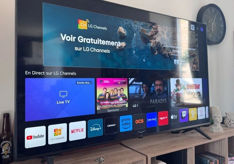 Téléviseur LG 55UQ7500.6LG / Taille : 55 Pouce / SMART TV / Résolution : UHD 4K (3840 x 2160 pixels) / HDR / Haut-parleurs : 20 Watts (2 x 10 Watts) Avec AI Sound / Plateforme : webOS 22 avec ThinQ AI / Processeur : α5 Gen5 AI Processor 4K / Qualité d'image HDR 10 optimale grâce à la prise en charge des principaux formats HDR (4K HDR actif) / Visionnage 360 VR / Connectivité : Wi-Fi, Bluetooth / Connecteurs : HDMI, USB / Compatibilité : clavier - souris - manette USB / Avec Magic Remote / Dimensions (L×l×H) : 1244 x 87.1 x 726 mm / Garantie 2 ans.