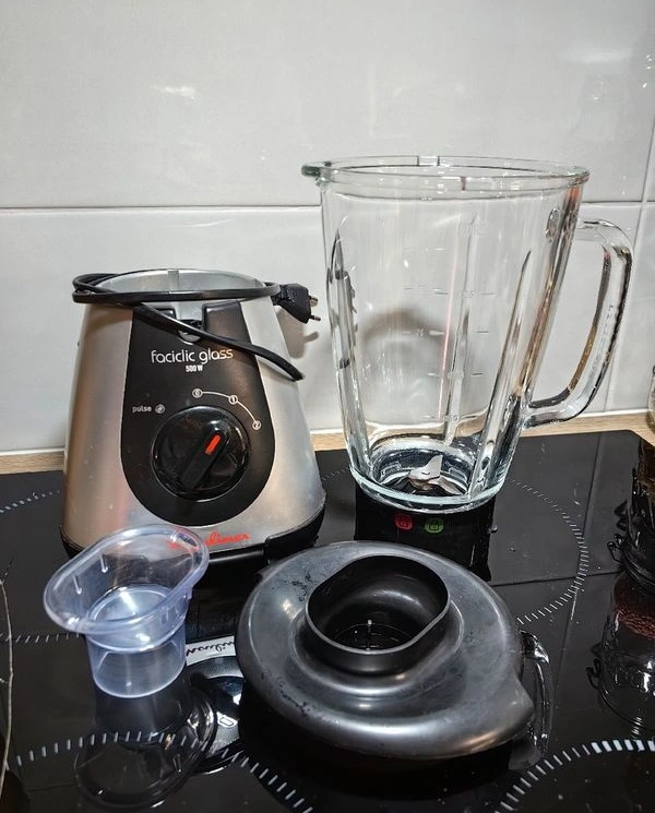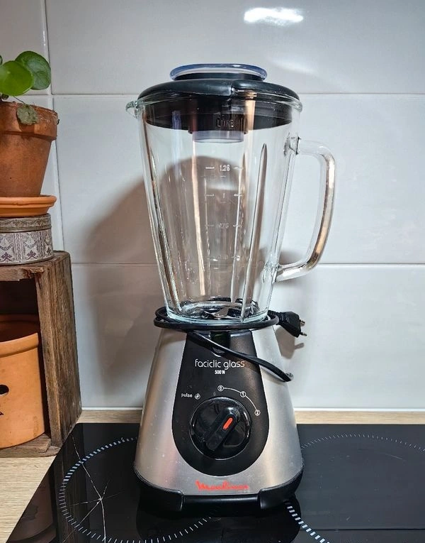 Blender Moulinex Faciclic Glass - LM310E10 / Puissance : 500 Watts / Capacité : 1.75 Litres / Bol en verre / 2 Vitesses + Pulse / Système FACICLIC : Une fixation sécurisée avec un clic / Lames amovibles / Dimensions (Lxlxh) : 40x23x23 cm / Garantie 1an.