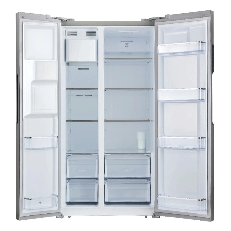 Référence : HYN-91SBSIM.BG | Type: Réfrigérateur Side by Side à double porte / Moteur: Inverter / Classe énergétique: A+ / Volume total brut: 562 Litres / Volume Réfrigérateur: 365 L / Volume Congélateur: 184 L / Système de refroidissement: No Frost total (sans givre) / Technologie: Multi-Air Flow – distribution homogène de l'air froid / Distributeur: Distributeur d’eau fraîche intégré / Éclairage LED: Intérieur haut et latéral / Commandes: Écran digital tactile (LED externe) / Thermostat: Double thermostat indépendant (réfrigérateur – congélateur) / Fonction Super Congélation: Oui / Mode vacances / économie d’énergie: Oui / Alarme porte ouverte: Oui / Autonomie en cas de coupure: 10 heures / Consommation d’énergie: Environ 420 kWh par an / Niveau sonore: 42 dB / Gaz réfrigérant: R600a (écologique – sans CFC) / Dimensions (L x P x H) : 91 x 66 x 178 cm / Alimentation: 220-240V – 50Hz / Couleur: Verre Noir / Garantie: 3 ans & 10 ans sur Moteur.