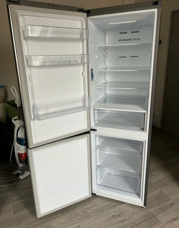 Réfrigérateur Combinée Samsung RB34T600FSA / Volume Brute totale : 355 Litres / Capacité congélateur : 124 Litres / Capacité brute pour le réfrigérateur : 231 Litres / Capacité nette totale : 340 Litres / Système : No Frost / Nombre De Portes: 2 Portes / Type de refroidissement : Mono Cooling / Classe d’efficacité énergétique : A+ / Consommation énergétique : 340 kWh/ an / Niveau Sonore : 35 dBA / Anti-givre / Éclairage intérieur LED / Fonction congélation & réfrigération rapide / Porte réversible / Dimensions (H x L x P) 185.3 x 59.5 x 65.8 cm / Poids : 66 kg / Garantie 2 ans & 20 ans sur moteur.