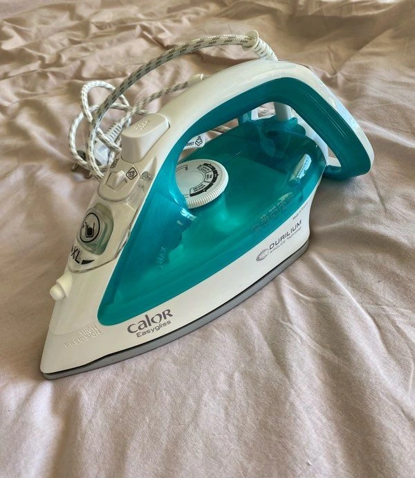 Fer à Repasser Vapeur TEFAL Easy Gliss FV5718EO / Puissance : 2500 Watts / Débit vapeur : 0 à 45 g-min / Fonction pressing : 195 g-min / Réservoir : 270 ml / Semelle avec technologie Durilium Airglide / Défroissage vapeur vertical / Temps de chauffe rapide : 2 min / Système anti-calcaire / Anti-goutte / Longueur du cordon : 2 m / Dimensions : 14x15x30 cm / Garantie 1 an.