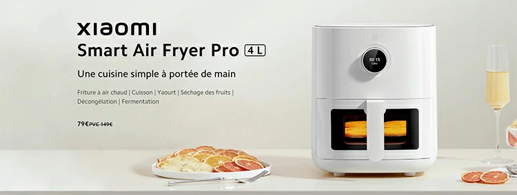 Friteuse à Air Xiaomi 44577 / Puissance : 1600 Watts / Capacité : 4 Litres / Écran OLED / Cuisson jusqu'au 80°C / Air chaud Sans huil / Programmation 24 heures / Panier avec revêtement anti-adhérent / Poids net : 3,9 kg / Dimensions : 251x 335x 304 mm / Smart avec Wifi / Garantie 1an.